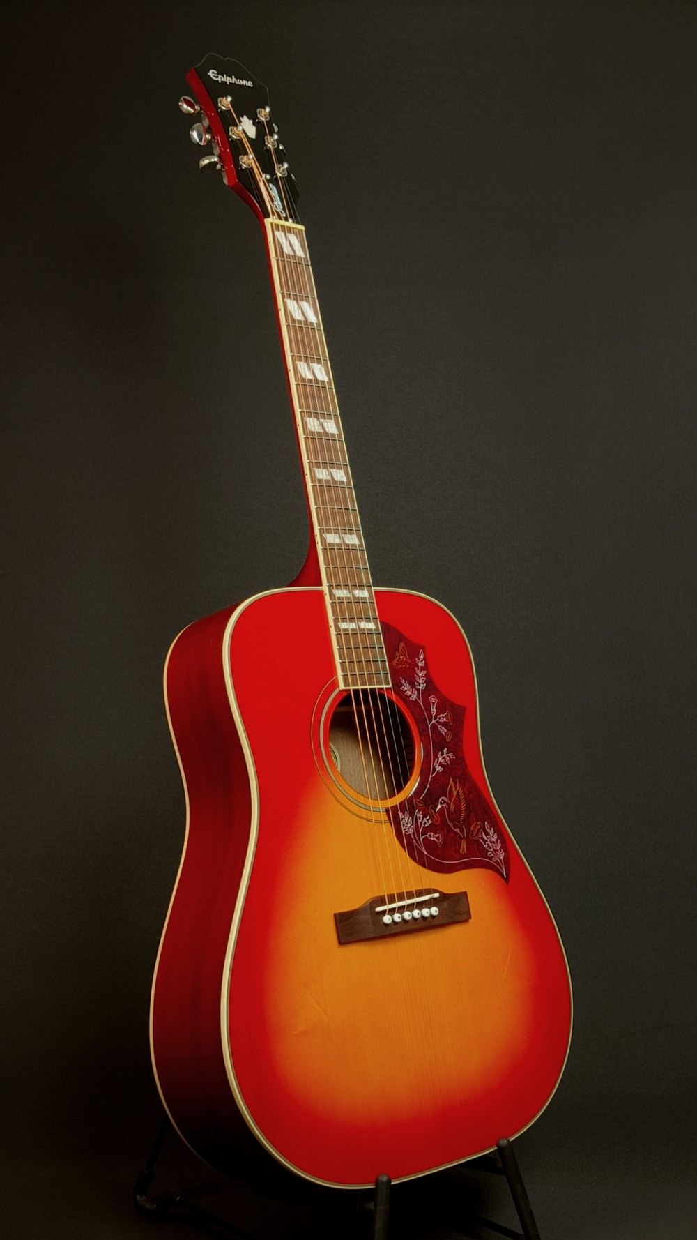 Epiphone Hummingbird Studio är en snygg och bra kopia på originalet. Med solitt lock och mycket snygg finish är den väldigt prisvärd och känns välbyggd. Jämför dem gärna i butiken.