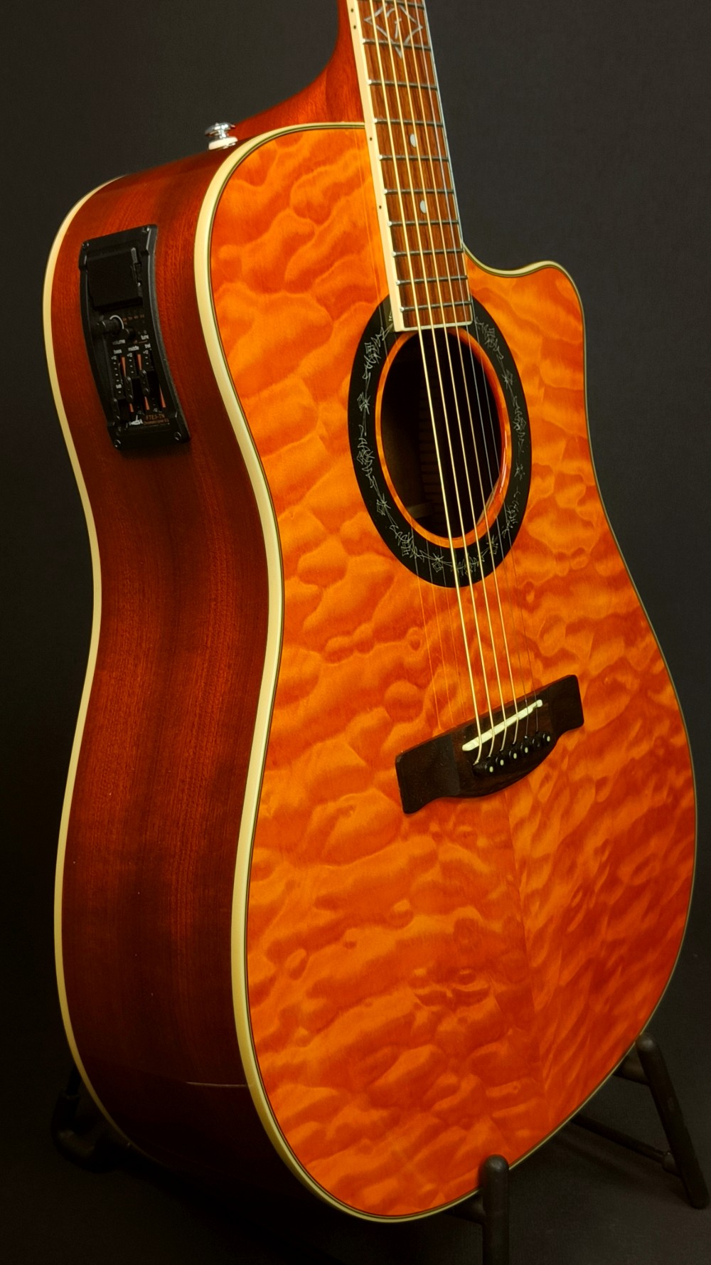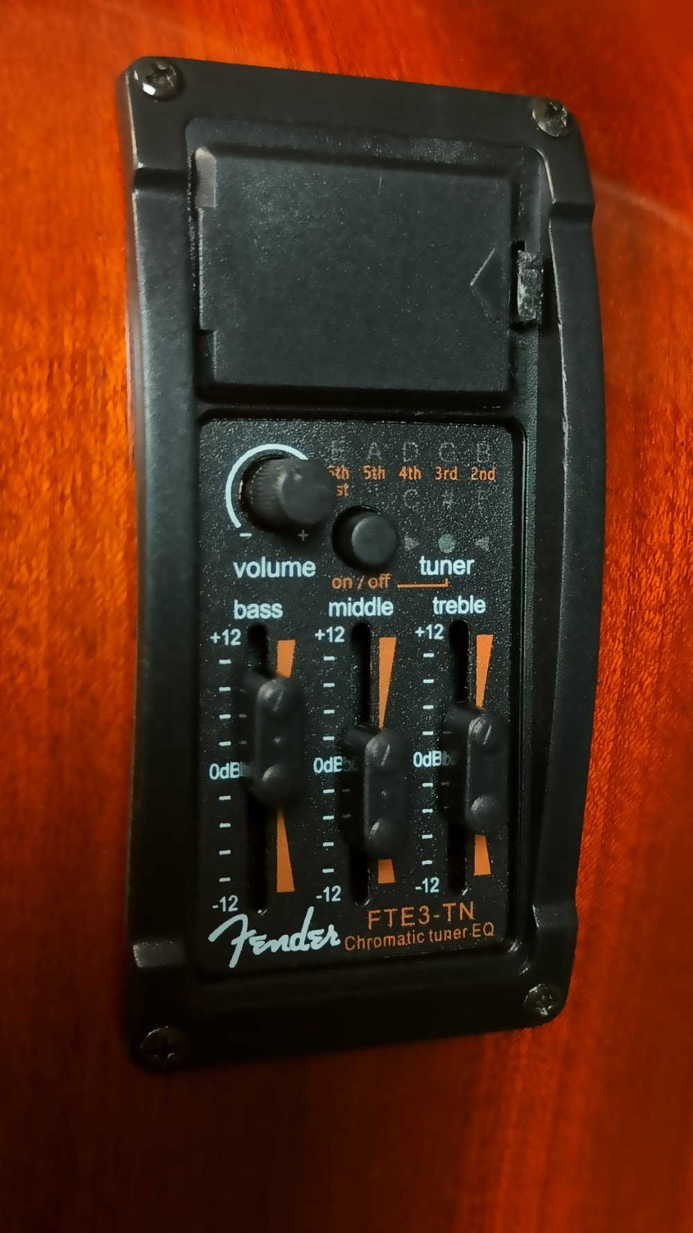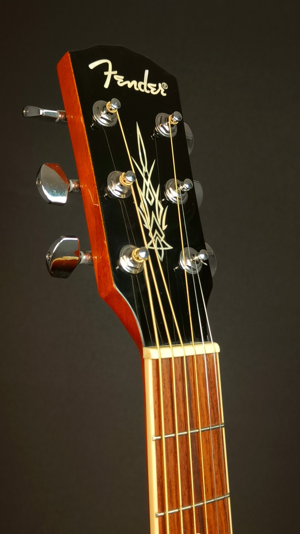Fender T-Bucket 300CE är en väldigt snygg gitarr med inbyggd Fishman mikrofonsystem. Den har laminerat material men låter ändå trevligt med scalloped bracing. Gitarren är i mycket fint skick och låter mycket bra inpluggat också. 43 mm halsbredd och 35,3″ (643 mm) mensur. Nypriset var över 4000:-