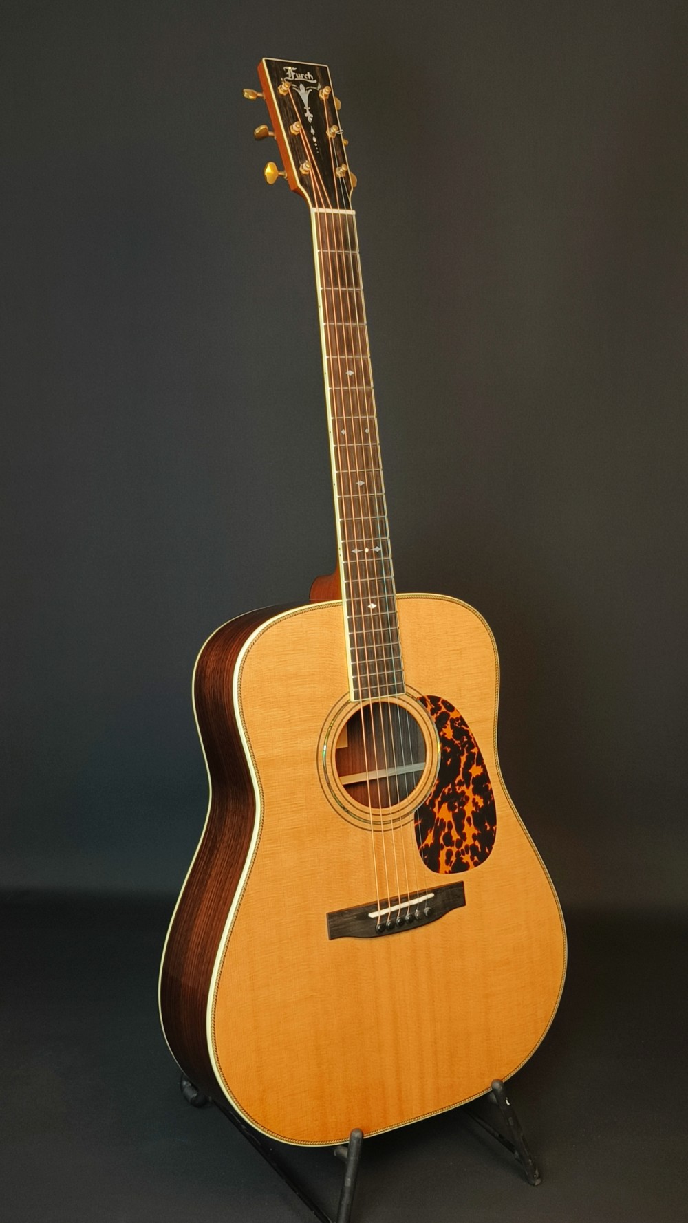 Furch D 34-SR tillverkad 20/4 2017. Gitarren är i toppskick och har knappt några spår efter användning. Modellen motsvarar dagens Vintage 2 D-SR ch är originalutrustad med L. R. Baggs Element Furch D-34 VTC mikrofonsystem. Levereras i hårt originaletui inklusive en Humitron luftfuktare.