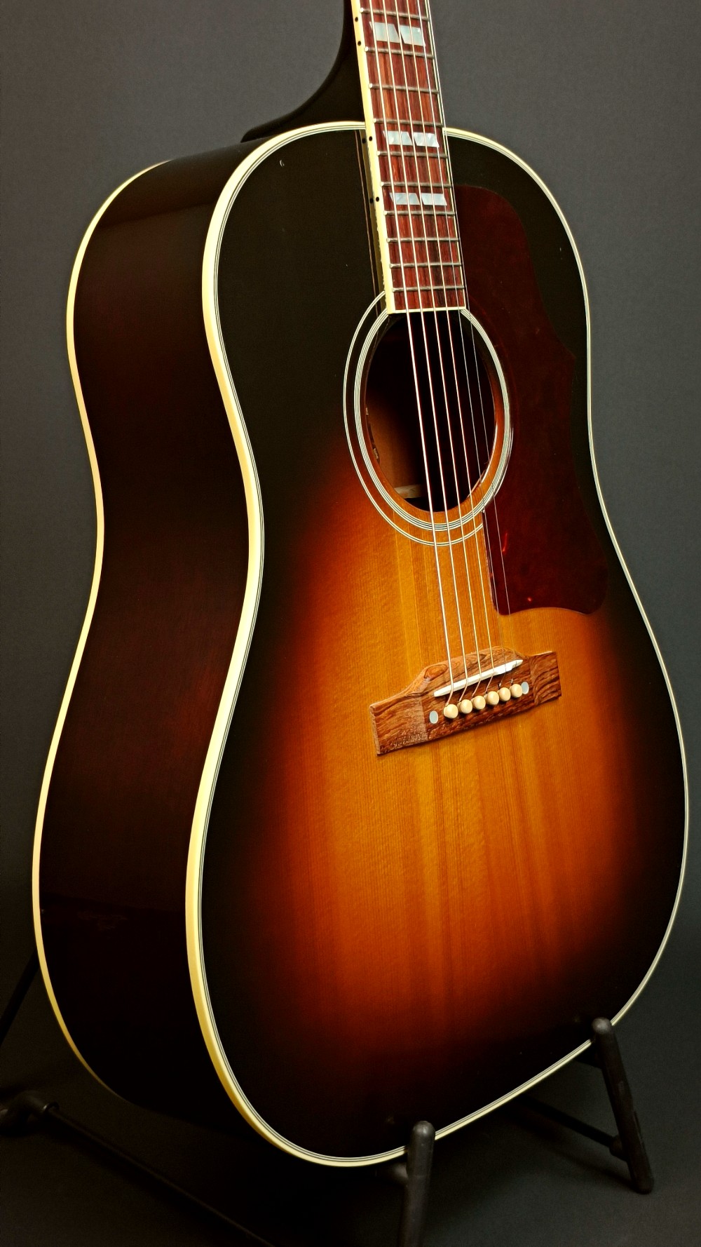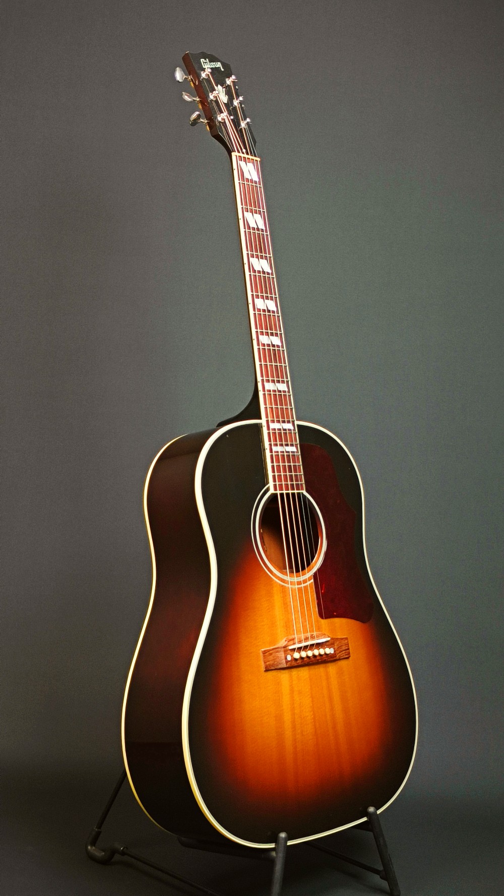 Gibson Southern Jumbo är en lite lyxigare J-45 med pärlemorinläggningar i halsen, fler och snyggare kantlister, större plektrumskydd och kantlist på greppbrädan. Klangen, materialet och konstruktionen är liknande, men Southern Jumbo är lite mer elegant. Vårt exemplar låter och spelar utmärkt, har inga större skavanker och ger ett mycket fräscht helhetsintryck. Utrustad med L. R. Baggs Element VTC mikrofonsystem och levereras i hårt originaletui med luftfuktare.