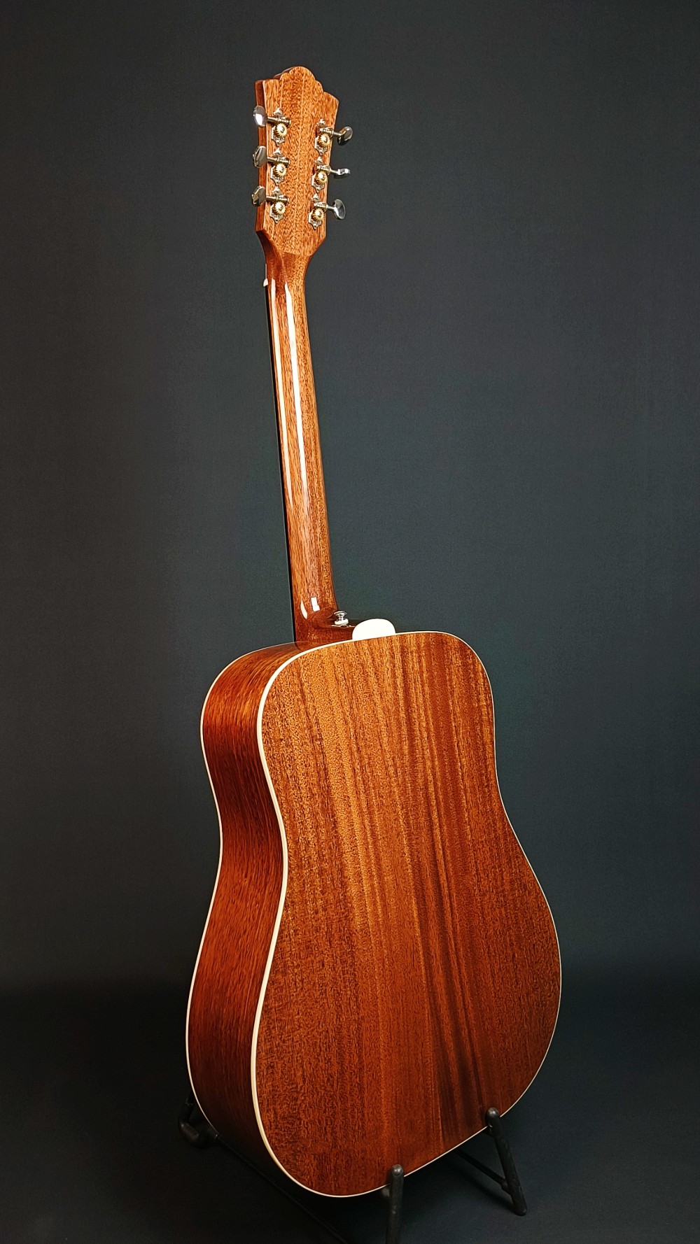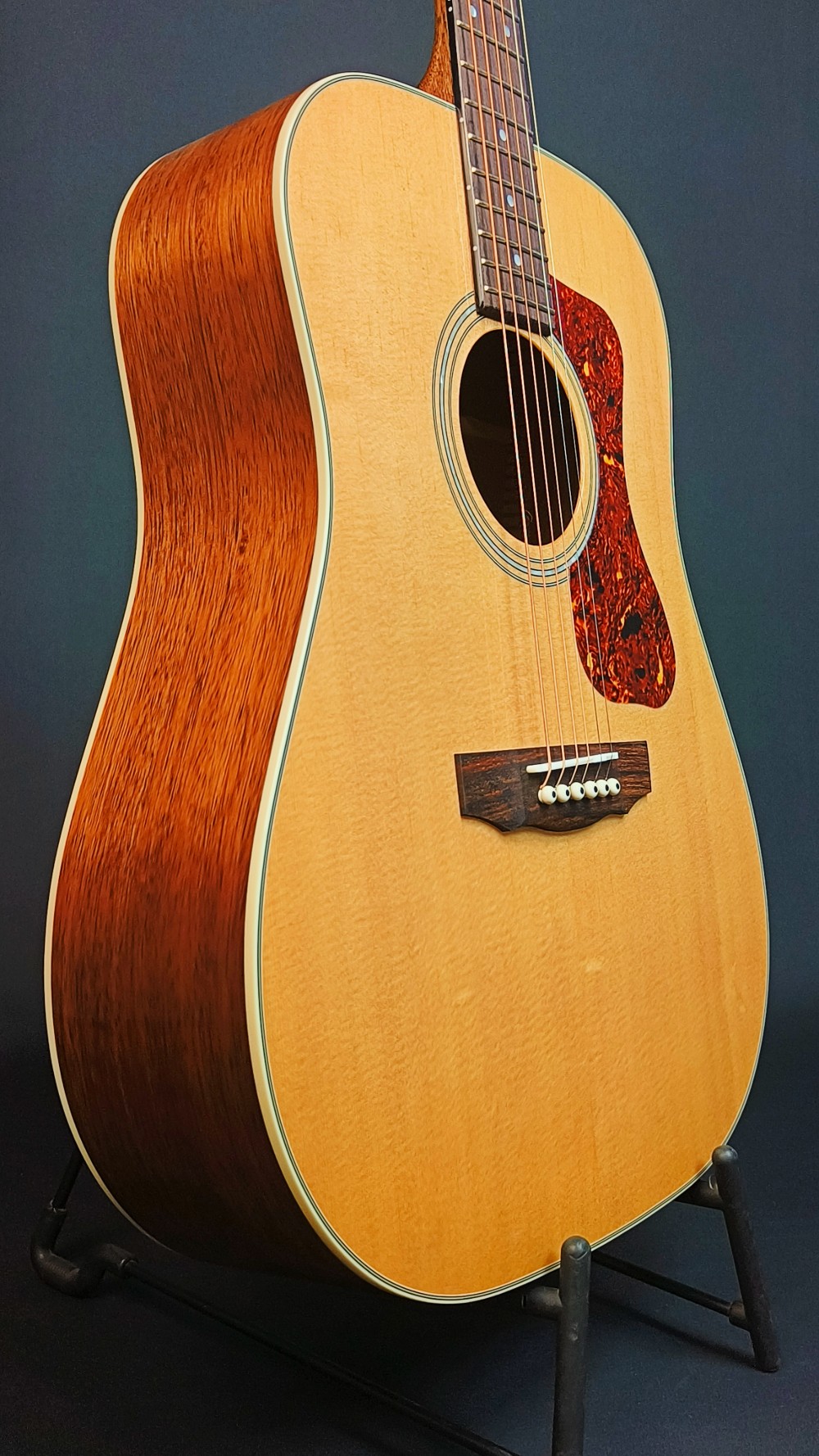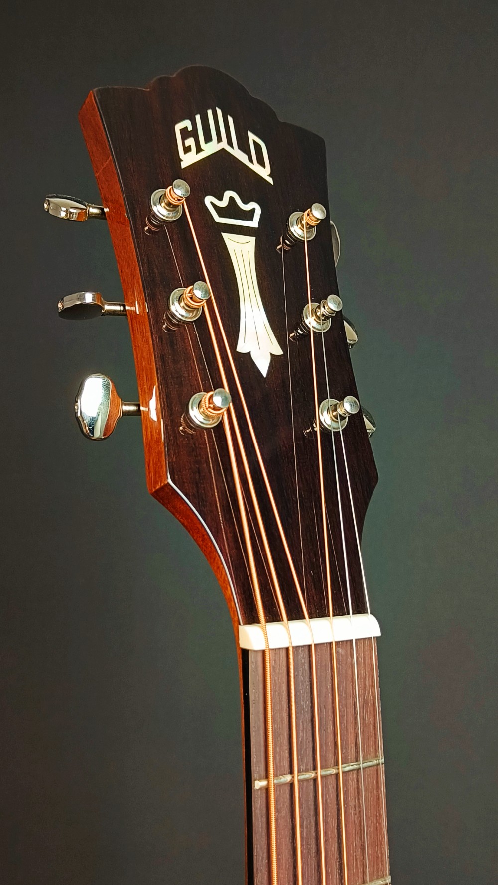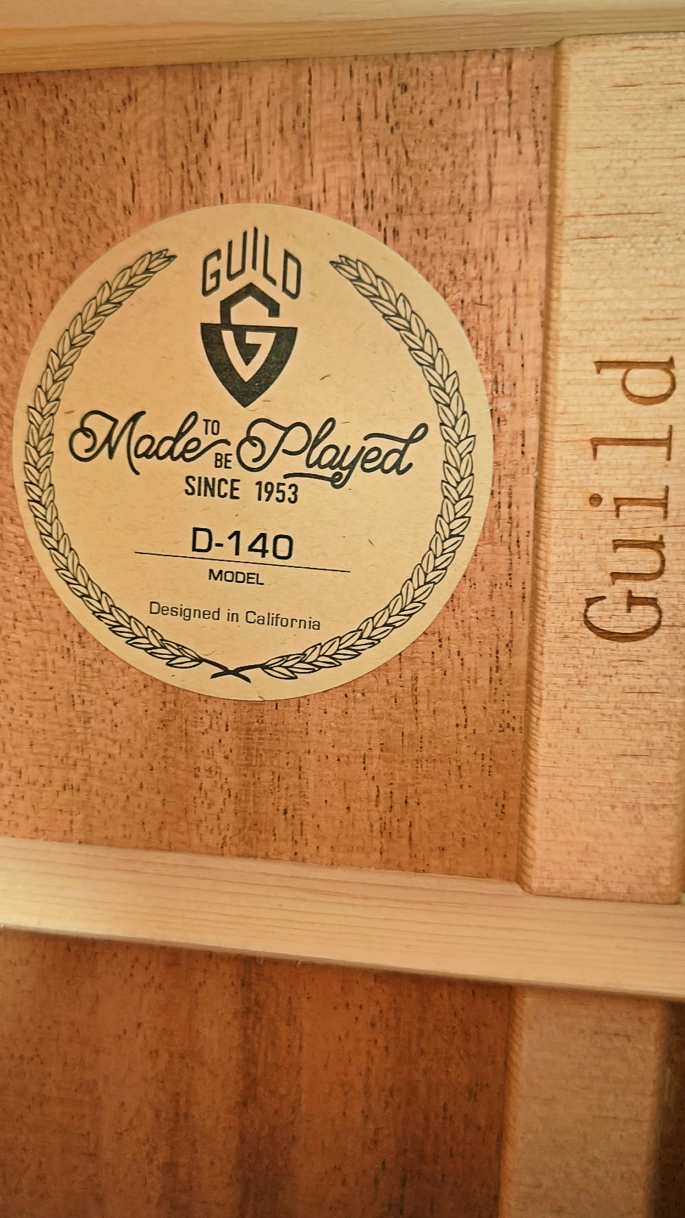 Mycket snygg Guildgitarr med högblank lackering. Byggd av solid mahogny i sidor, botten och hals, med granlock och rosewood greppbräda och stall. Låter även väldigt trevligt, med stor rymlig och mjuk klang med stark dynamik och stark basregister. Levereras i mycket fint, stoppat fodral med broderad logga. Guild D-140 finns även i Cherry burst. Spelkänslan, byggkvaliteten, utseendet, klangen och hela upplevelsen ger hög kvalitetskänsla. Mycket gitarr för pengarna.