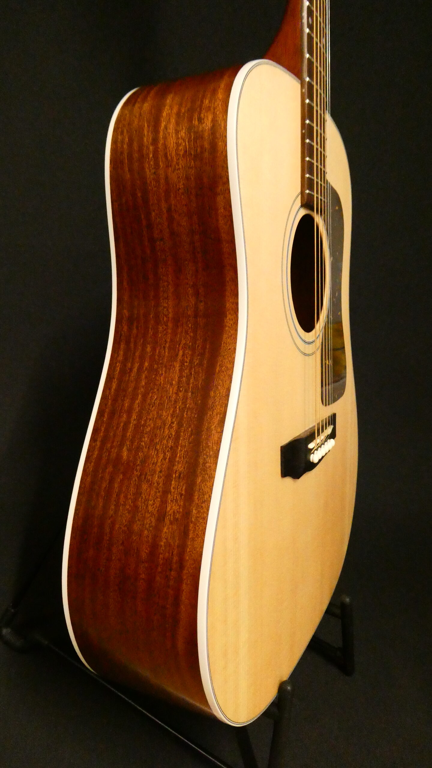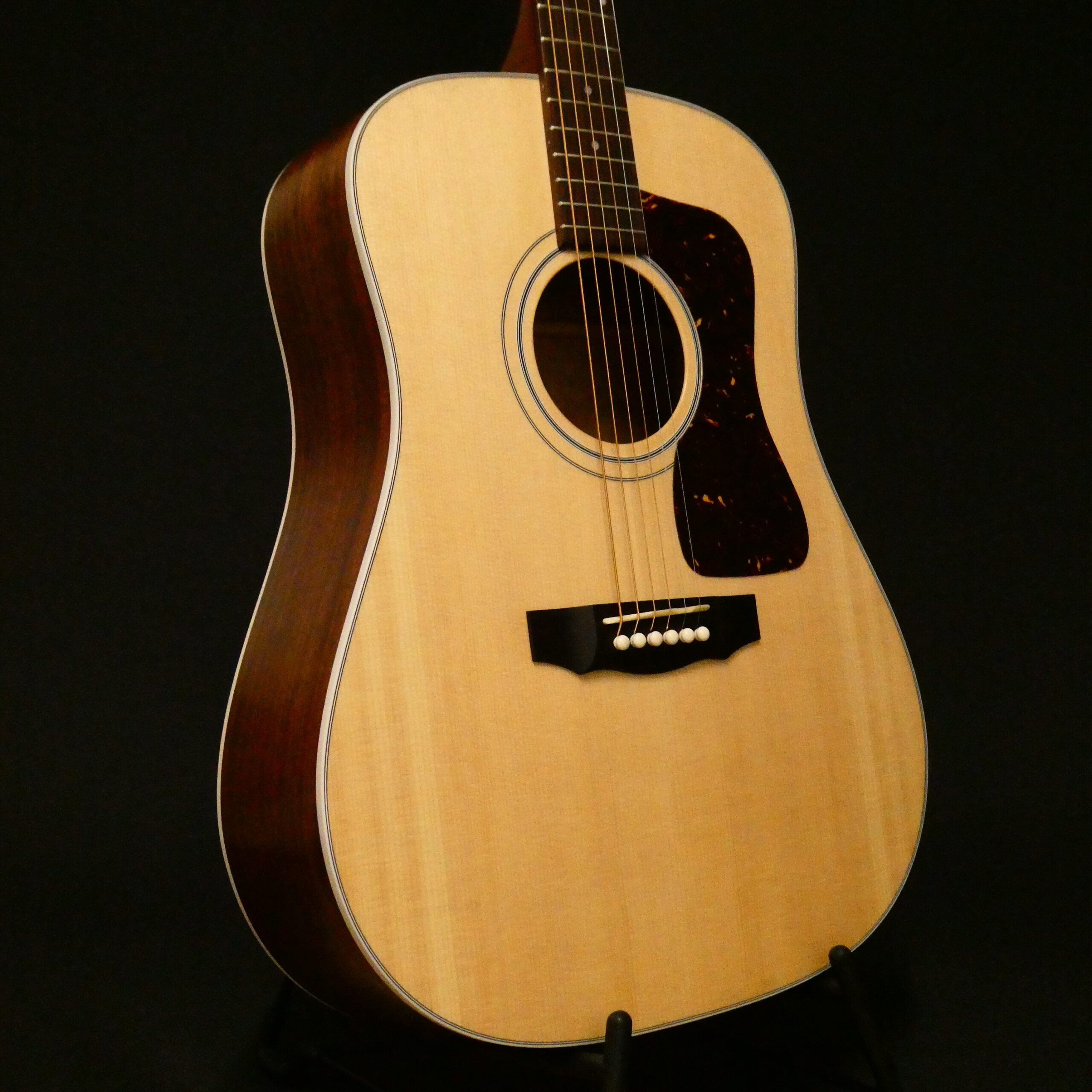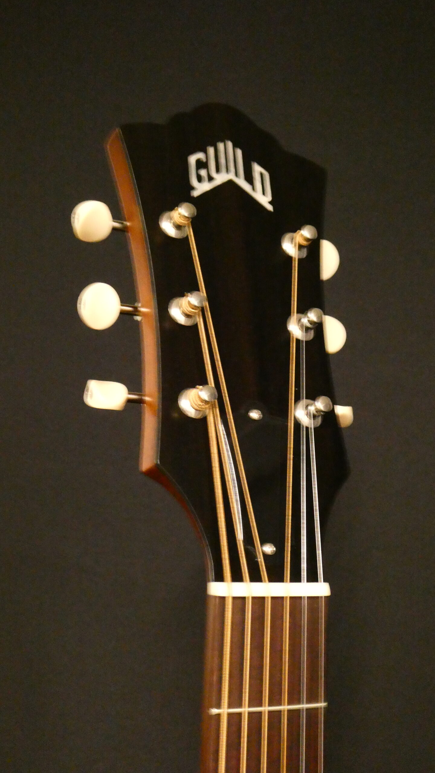 Guild D-40 Standard är den gamla välkända modellen från 1960-talet i ny finish. Har en sidenblank lyster med subtil elegans. Gitarren har sitkagran lock, mahogny hals, sidor och botten och rosewood stall och greppbräda. Scalloped bracing av Adirondack spruce och tortois plektrumskydd. Mycket varm, något spröd men väldigt tät klang med en stadig basregister. En välbyggd amerikansk gitarr med den rätta klangen. Levereras i hårt originaletui med inbyggd luftfuktare. Tillverkad i U.S.A.