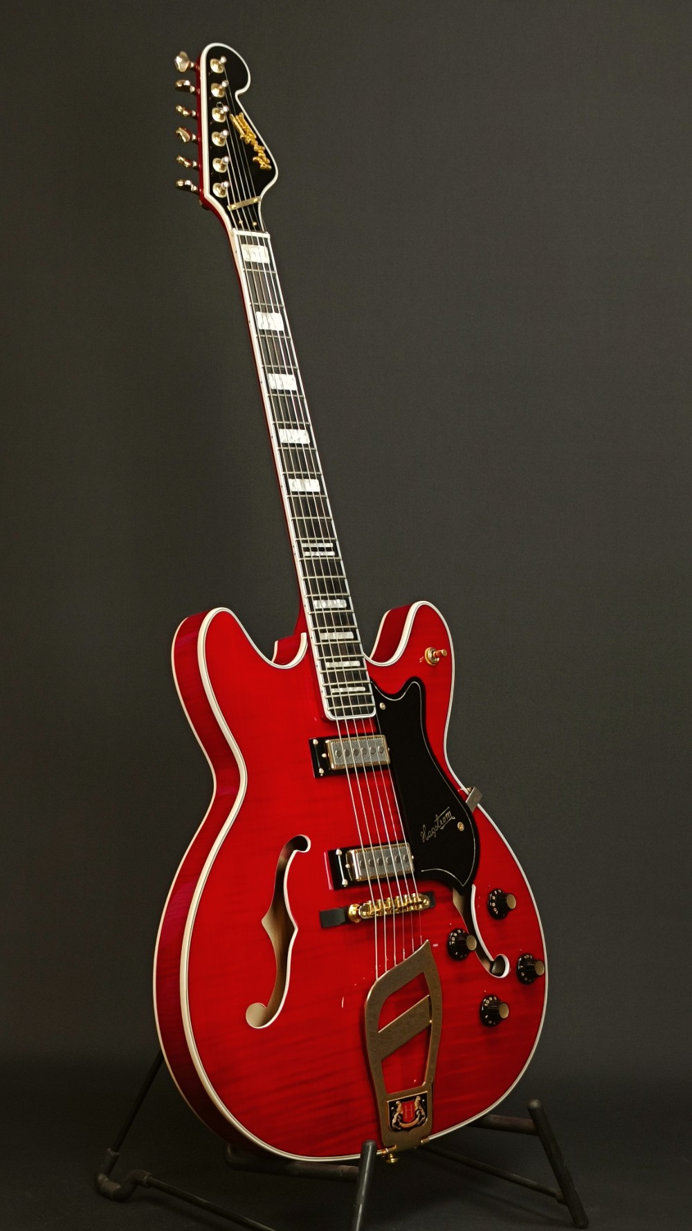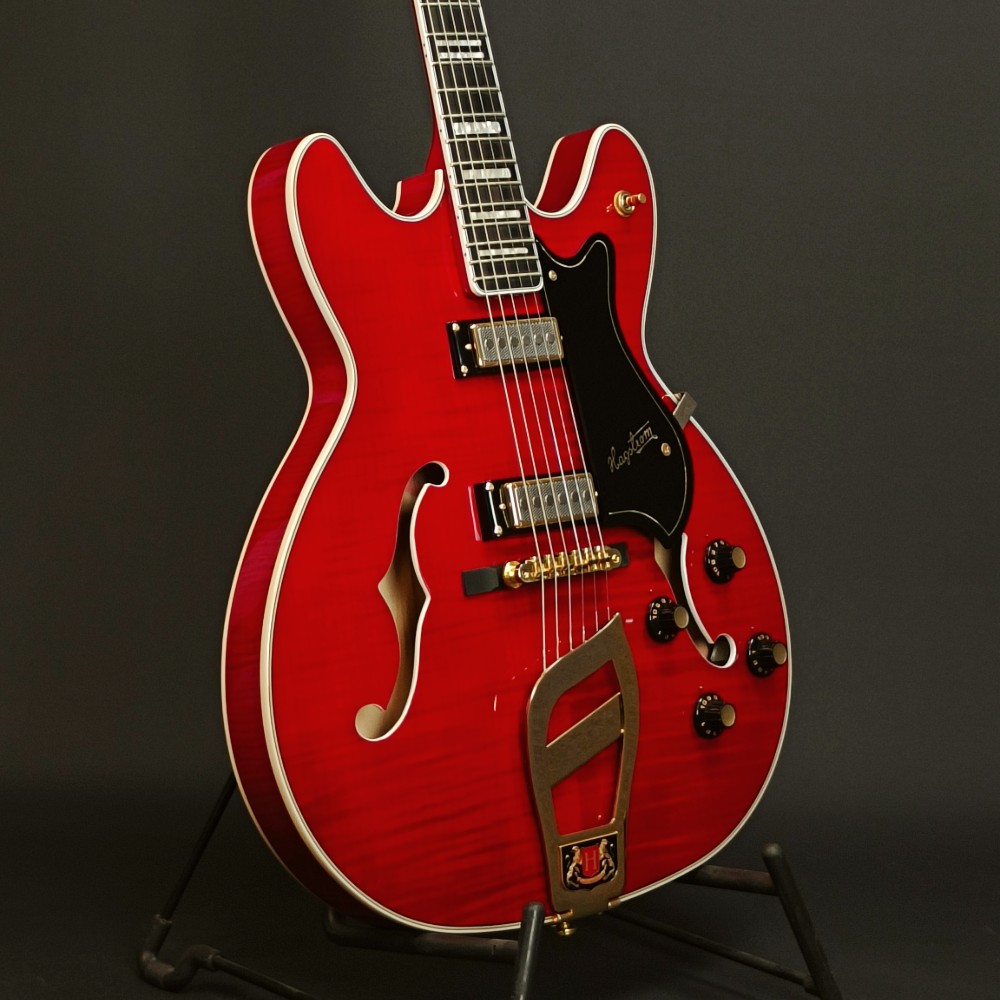Begagnad Hagström ’67 Viking II – Tillverkad 2022. Återlansering av gitarren som Elvis Presley använde under sin 1968 comeback special TV show. Ett ikoniskt instrument, här lätt begagnat, tämligen sparsamt använd. Den ser ut och känns nästan som ny. Gitarren kostar 10-11 tusen i butiker ny, så denna är verkligen ett kap. Ljudet är omisskännligt från ’60-talet med de 2 Hagstrom H-52 AlNiCo 5 Gold Mini Humbuckers, med splitfunktion. Det är en inspirerande, väldigt snygg och klassisk gitarrmodell med fin spelkänsla. Nysträngad och intonerad med Ernie Ball Slinky 010 strängar.