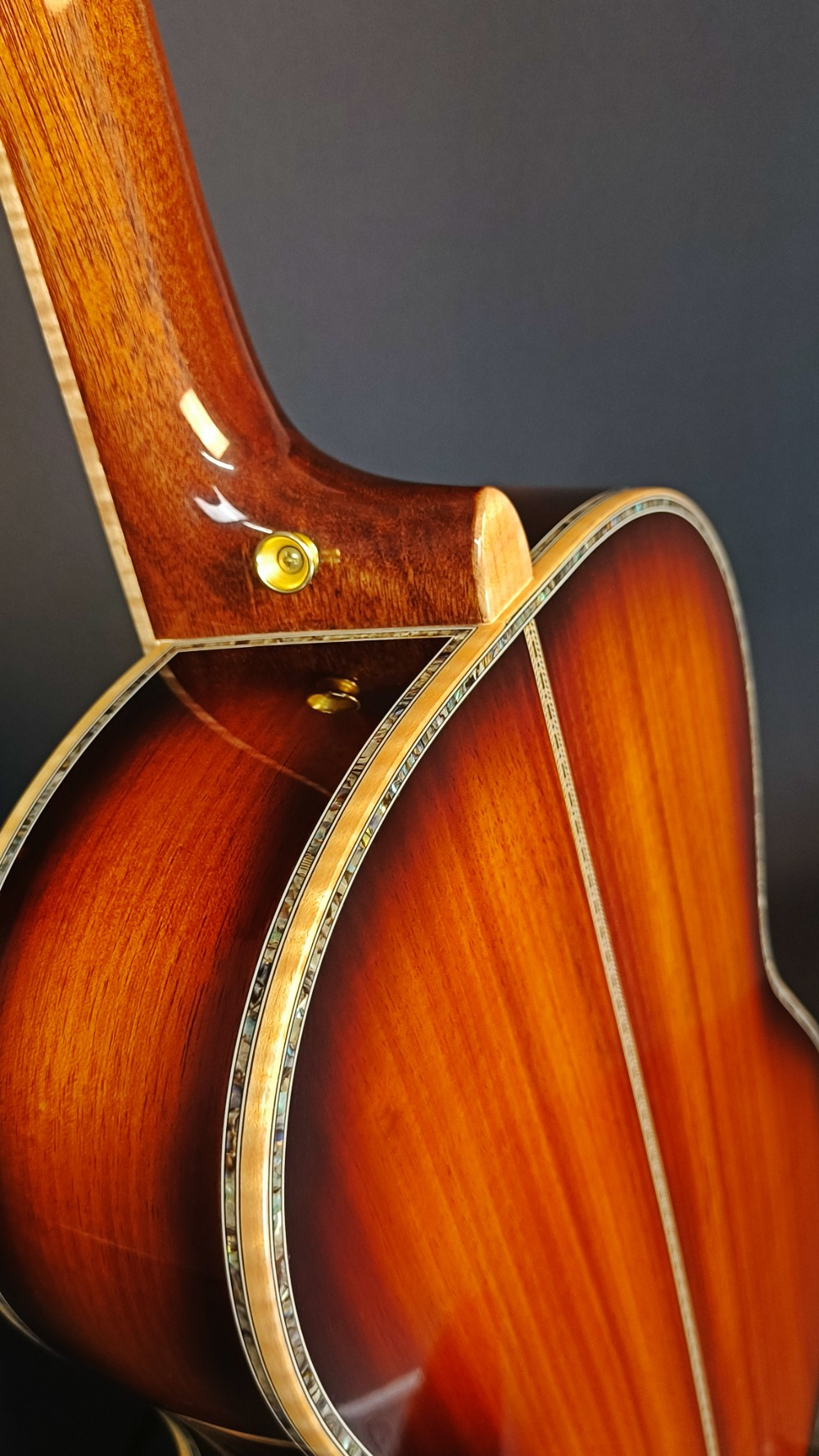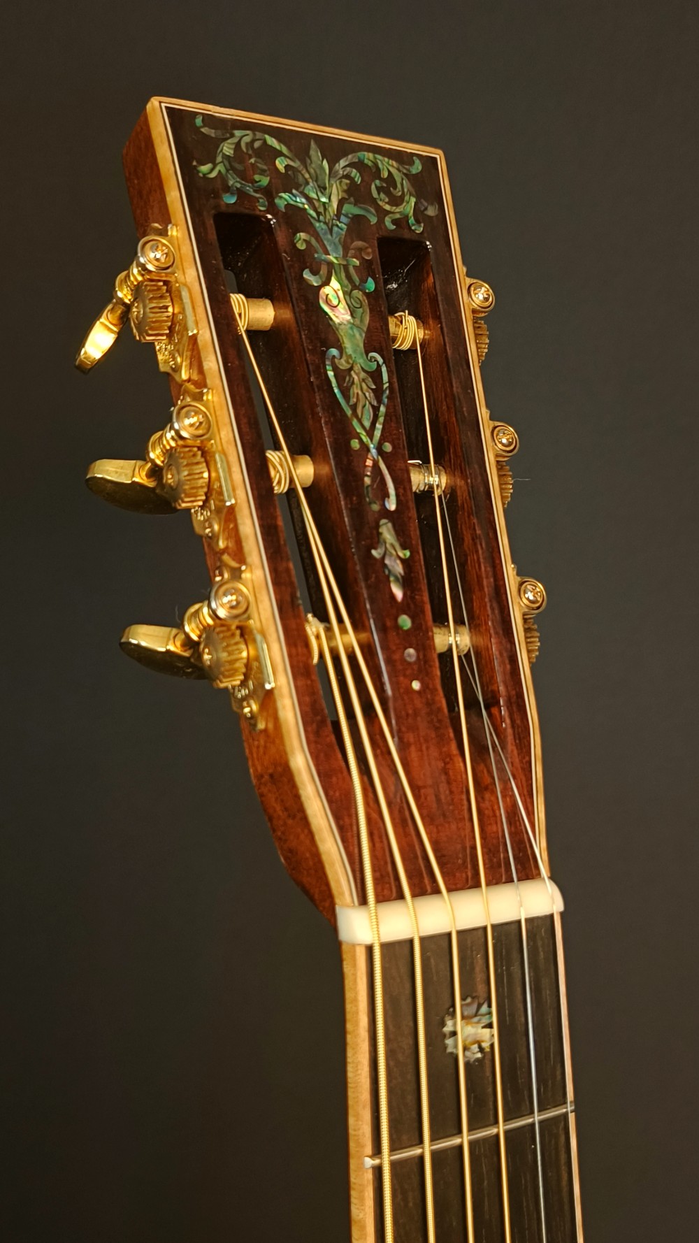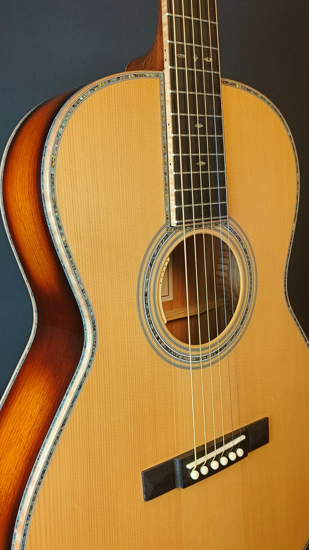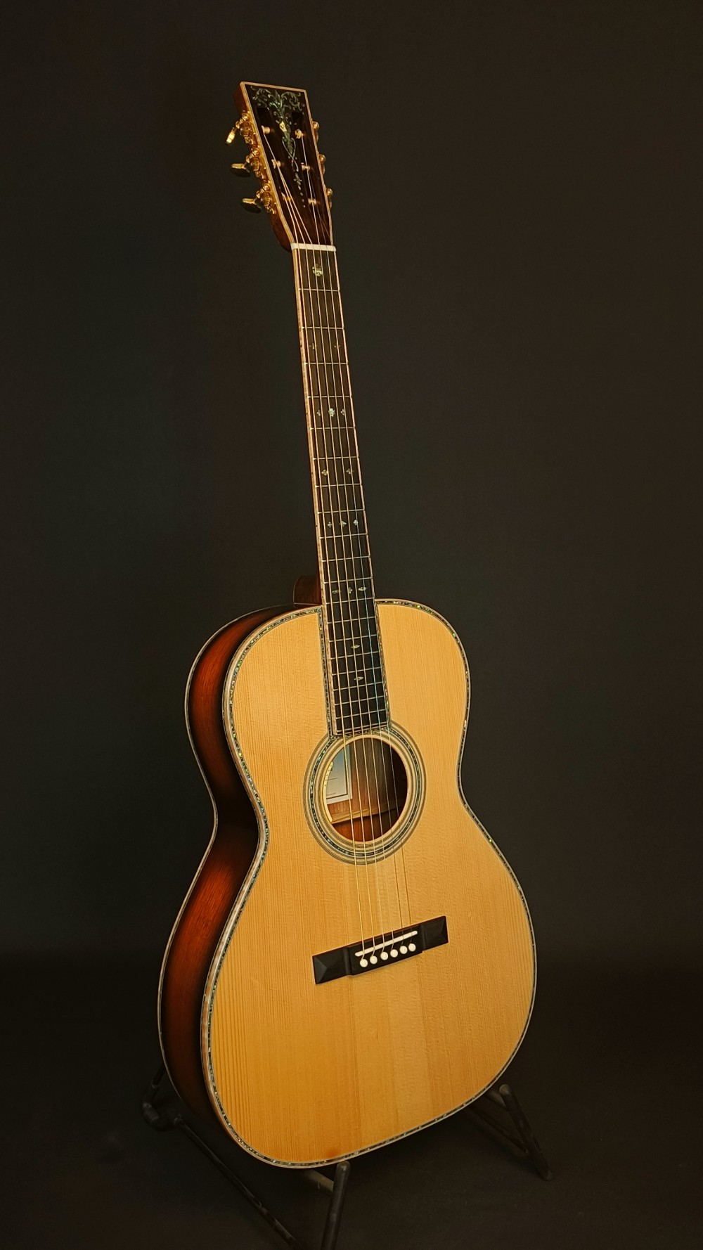 Sigma S000B-45VS+ LIMITED – utrustad med L. R. Baggs Anthem mikrofonsystem. Gitarren är byggt av helt solida material av mycket hög klass och är rikligt utsmyckad runt om med pärlemorinläggningar och lackerad med nitrocellulosa lack. Endast 48 stycken byggdes, varav denna är nr 1. En väldigt fin och bra gitarr, den är inte bara tjusig att se på, den låter även väldigt bra. Levereras i hårt originaletui med broderad logga och med Humitron luftfuktare. Specifikationer: