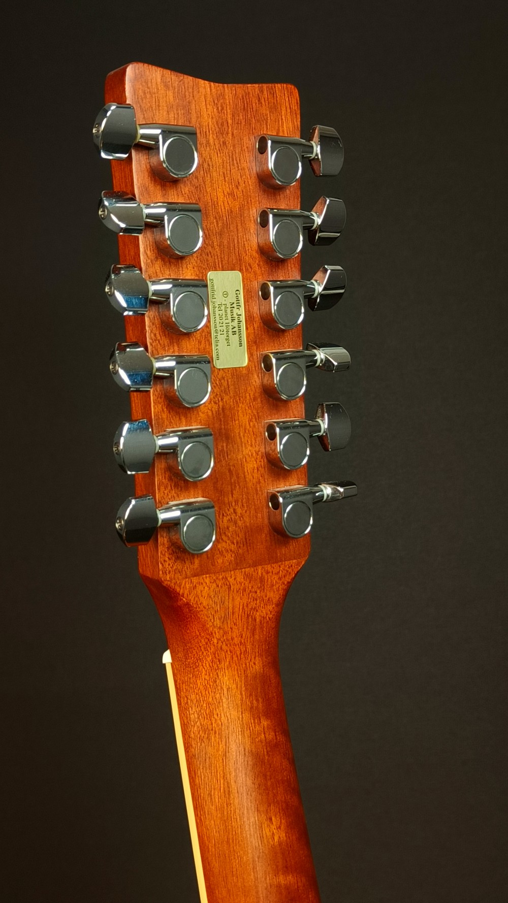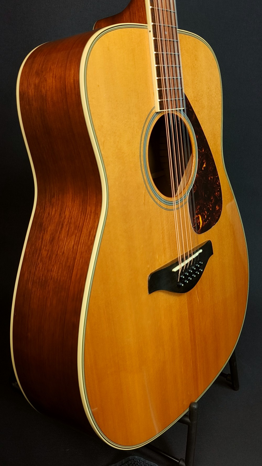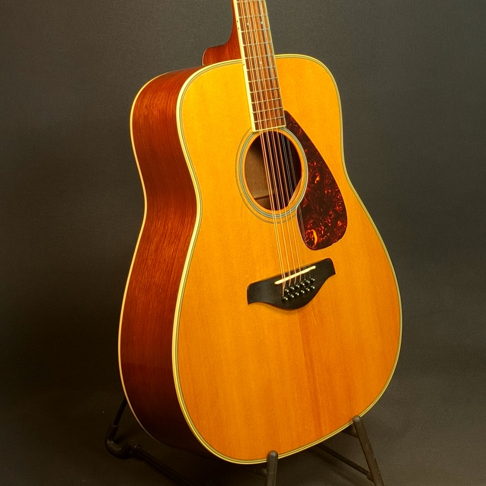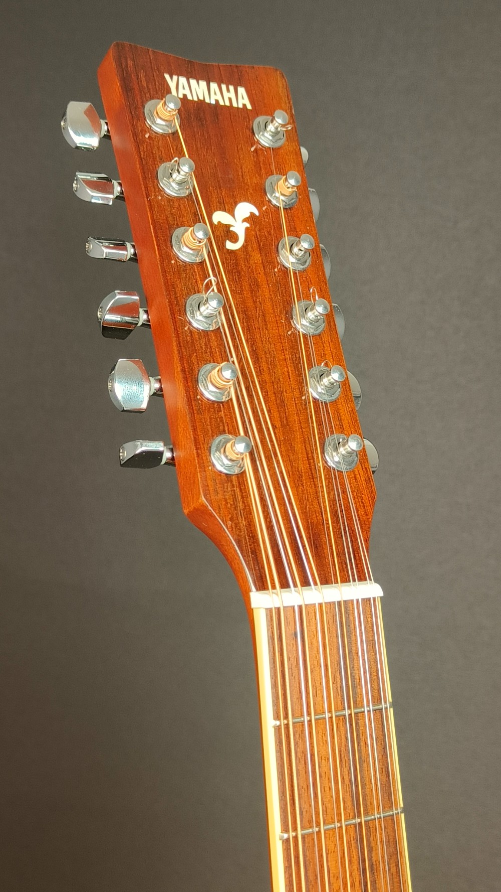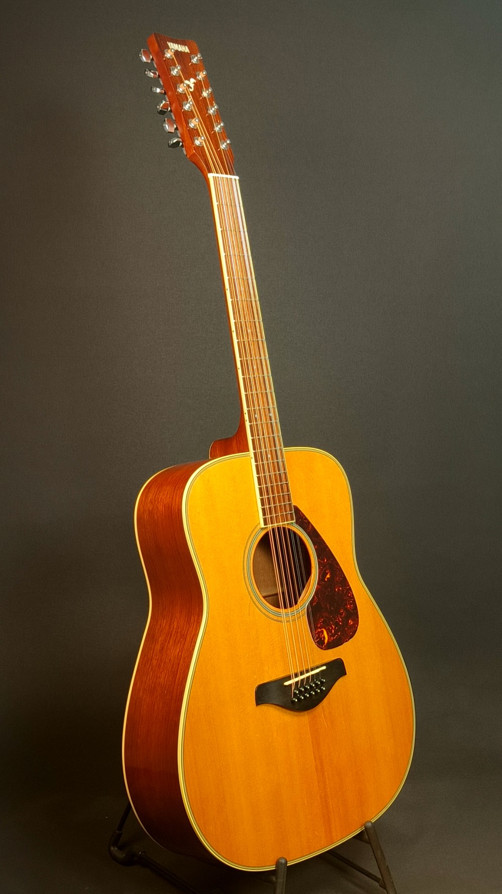 Denna Yamaha FG720S-12 är en begagnad 12-strängad gitarr med solitt granlock. Den är tillverkad den 24:e november 2011 och är i toppskick. Yamaha är ett av de ganska få gitarrföretag som kan bygga hållbara 12-strängade gitarrer, som ändå låter bra. Nypriset var ca 3500:-, den såldes på Gottfrid Johansson Musik AB på Järntorget i Gamla stan. Den är fortfarande nästan som ny, lättspelad och skön. Mycket gitarr för pengarna.