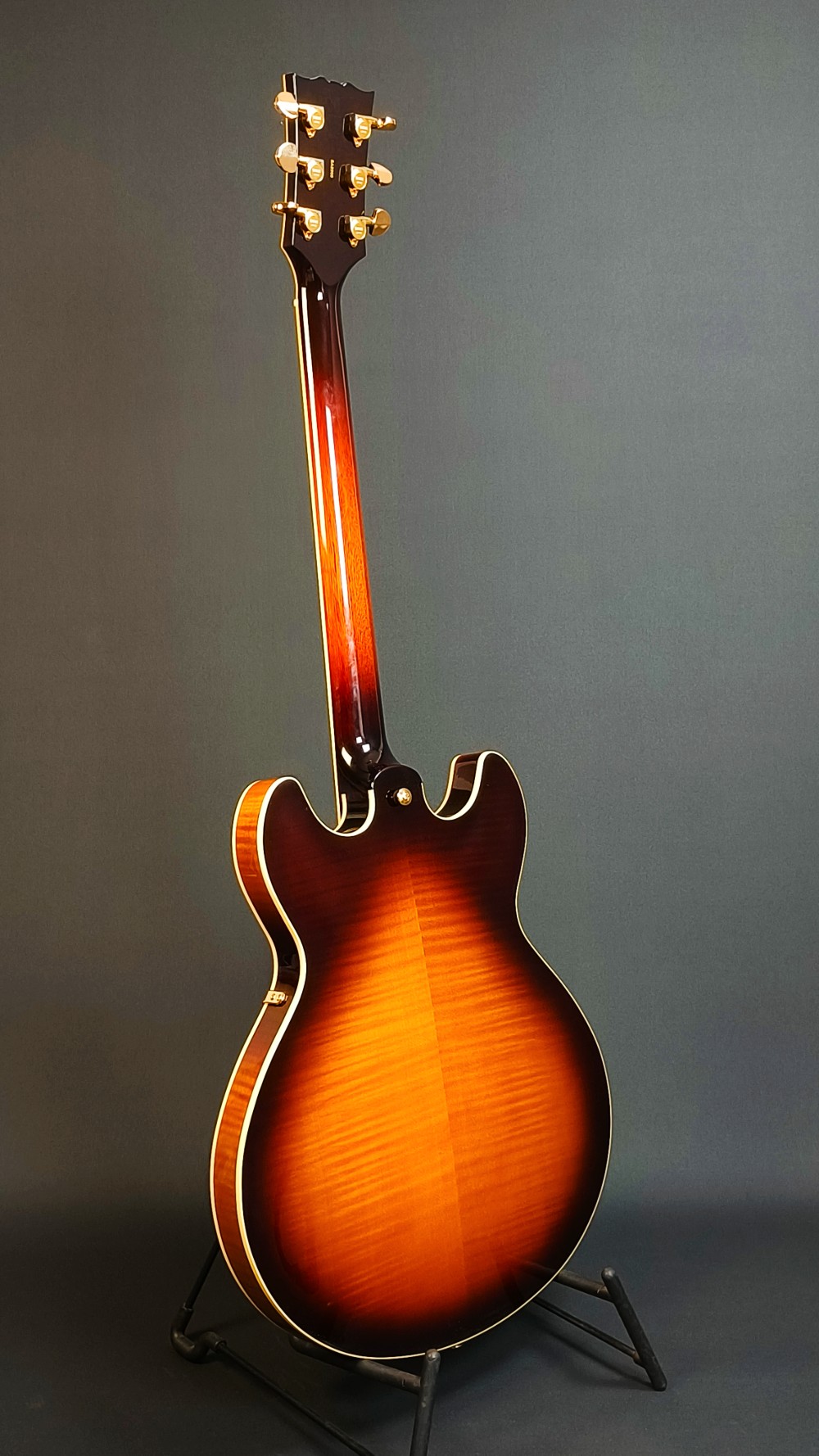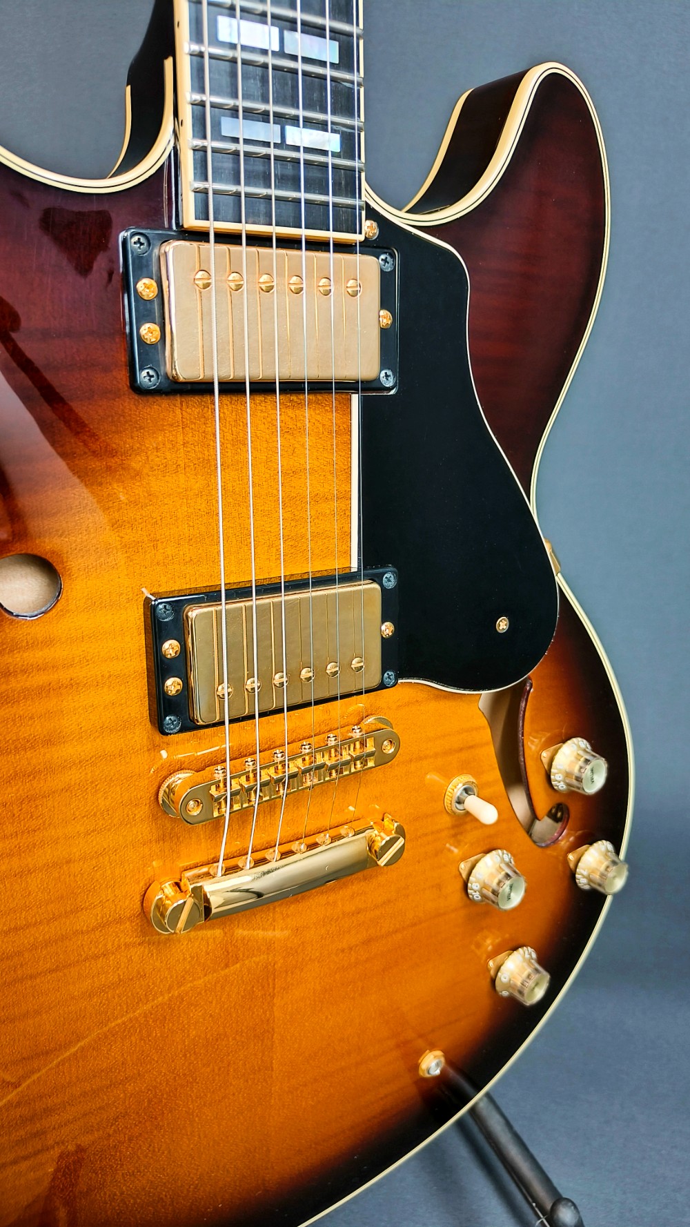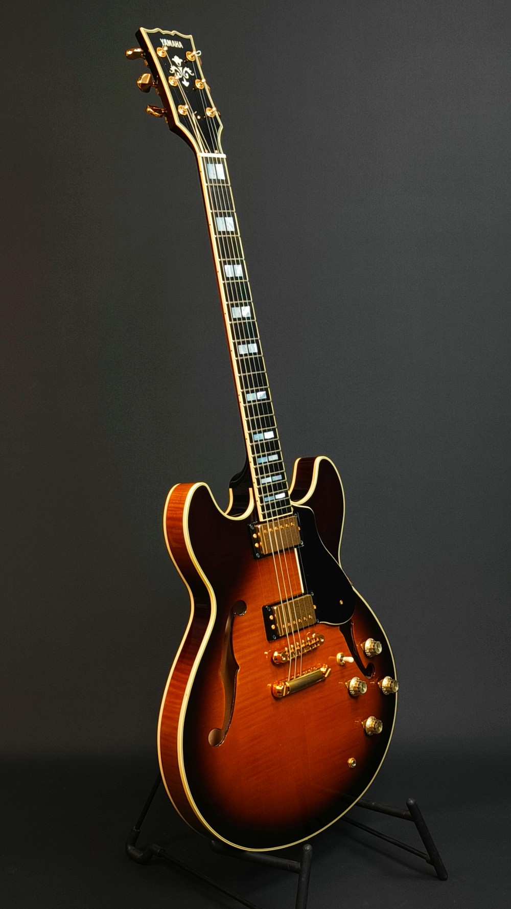 Yamaha SA2200 är byggd i Japan, en Gibson ES-335 kopia av imponerande kvalitet. Både klangen, spelkänslan och byggkvaliteten är av världsklass, jämförbart med de allra bästa. Vårt exemplar är i toppskick, ser nästan ny ut. Vi har reparerat dess spräckta huvud för 4 år sedan, men denna reparation går inte att se. Gitarren är i stort sett som ny, det finns inga spår av användning. Nypriset ligger runt 26.000:-.  Den måste upplevas, du kommer inte bli besviken.